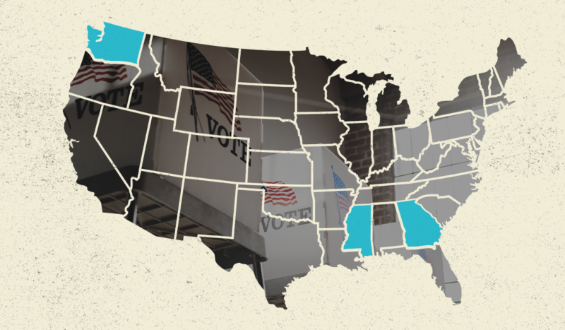 On the Democratic side, Biden won the Georgia primary with 95% of the vote. With 80% of the vote reporting in Washington, his vote share in the state was just shy of 87%. He was uncontested in Mississippi.