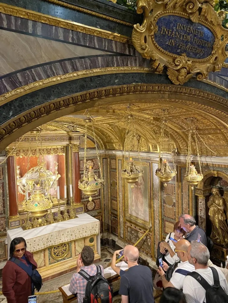 The basilica also preserves the relic of the swaddling clothes mentioned in the Gospel of Luke (2:7) and displays the first statuary Nativity scene, commissioned after Saint Francis of Assisi’s live Nativity. These artifacts further enhance the basilica’s role as a center for Christmastide devotion.